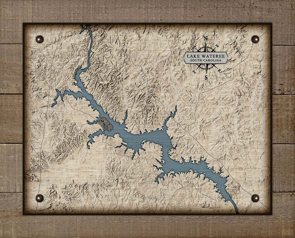 Lake Wateree South Carolina Map Design On 100% Natural Linen